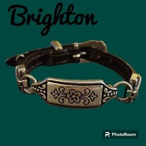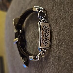 VTG BRIGHTON 1990s Floral Black Leather Belt Bracelet