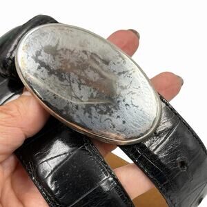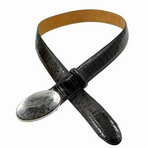 VTG BRIGHTON LEATHER BELT WESTERN BOHO CLASSIC BLACK SILVER SZ M *WORN BUCKLE