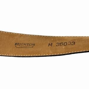 Up for sale, a nice Brighton vintage 90s belt. It is in good preowned condition but the buckle does show where and distressing to the Silvertone. It has been polished and a shiny, but still shows marks. It is marked a size M.