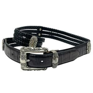 VTG BRIGHTON LEATHER CONCHO BELT WESTERN BRAIDED CLASSIC COWGIRL BOHO SIZE M