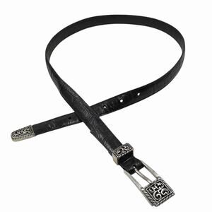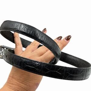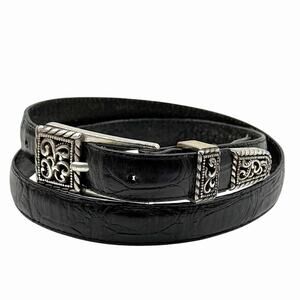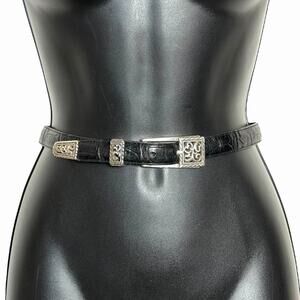 VTG BRIGHTON LEATHER SKINNY BELT WESTERN BOHO CLASSIC PREPPY BLACK SILVER SZ 32