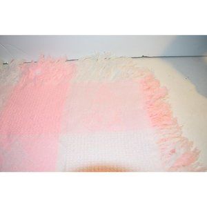 VTG Baby Blanket Pastel Pink Acrylic Fringed Knit Bunny Rabbit Waffle weave