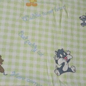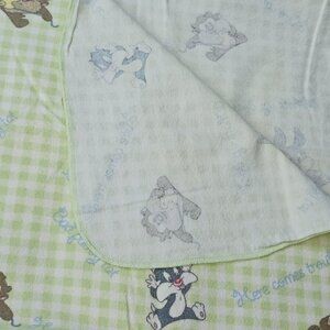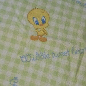 VTG Baby Looney Tunes Flannel Blanket Green Plaid Cotton By DOLLY Tweety Taz