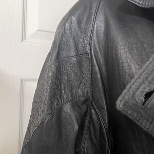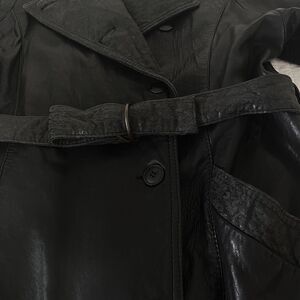 #23805 Margaret Godfree Bagatelle Sz 12 Long Black Leather Trench Coat 70's-90's Maxtrx Goth Grunge Mob Wife VTG