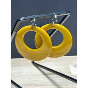 VTG Bakelite Earrings Mustard Butterscotch Donut Dangle Hoop Mod Retro 2.25”