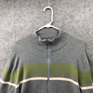 VTG Banana Republic Full Zip Sweater Mens M Gray Green Stripe Knit Cotton