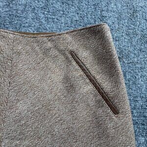 This vintage Banana Republic skirt features a classic herringbone pattern in a versatile brown hue. Crafted from 100% wool, it offers warmth and elegance. Fully lined with acetate for comfort and durability, it includes discrete pockets and a quality finish. Ideal for professional settings.
