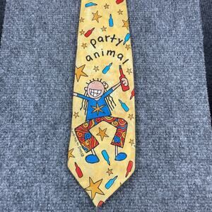 VTG Bang On The Door "Party Animal" Tie 3.5"X58.5" Yellow Geometric Allover Fun
