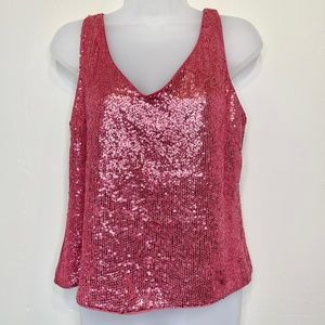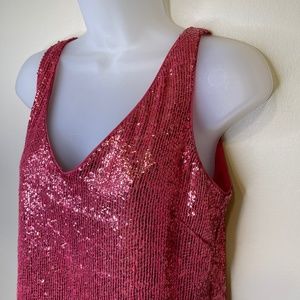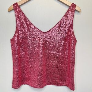 VTG Barbie Pink Sequin Retro Glam Crop V-Neck Tank Top
