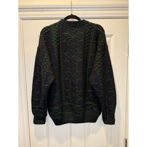 VTG Barbieri Knitwear Italy Fair Isle Knit Sweater Men L Green Blue Wool Blend