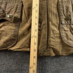 In good condition for its age. Has some patina / discoloration, some wear/damage at the sleeve ends, and the jacket has been shortened. The shortening was done by folding the bottom up and stitching it to the inside, so if you want to go back to full length, it should just be a matter of cutting that aftermarket stitching, then the bottom will fall back to full length. Has no size tag but measures ~2XL. See photos. Message for any questions, we reply quickly! This garment comes from a non-smoking house.