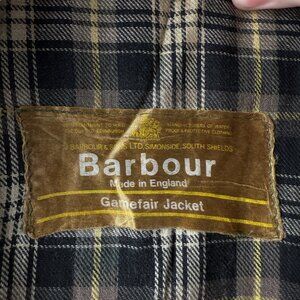 VTG Barbour Gamefair Waxed Jacket Men Full Zip Brown Tartan Lined England Made