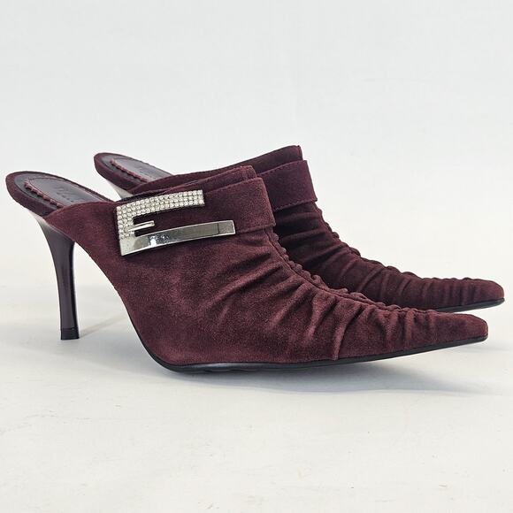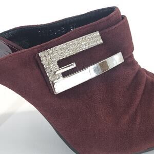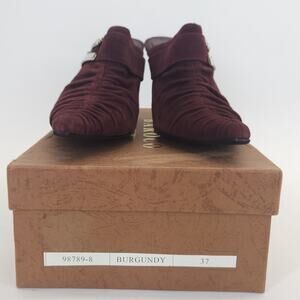 VTG Baroco Kitten Heel 37/6.5M Suede Burgundy Ruched Studded Slip On Whimsigoth Witch Vamp