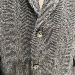 Men's wool blazer, herringbone blazer, 100% wool jacket, charcoal gray blazer, tailored fit jacket, Barrister blazer, Wallach's blazer, classic men's blazer, two-button blazer, formal blazer, wool suit jacket, made in USA, men's formal wear, business casual jacket, wool blazer for men, elegant wool coat, professional men's outerwear