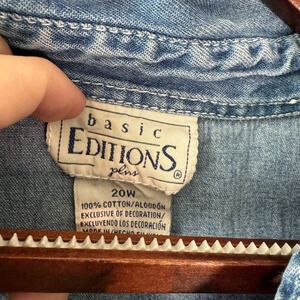 VTG Basic Edition Plus Denim Floral Embroidered Button Up Grannycore Size 20w