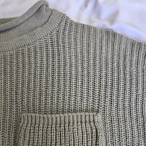 VTG Basic Outlook Womens Sweater Cotton Knit Sage Green Pocket Boxy