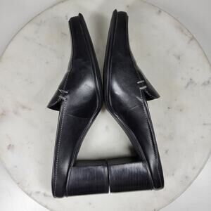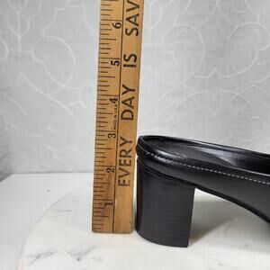 Vintage y2k Bass Womens Black Leather Square Toe Block Heels Slip On Clog Mules Size 6