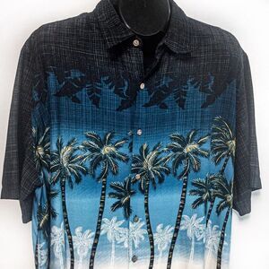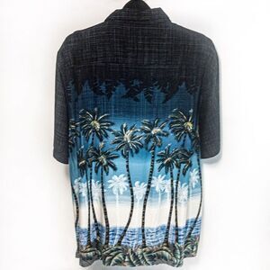 VTG Batik Bay Palm Trees Rayon Camp Shirt Sz XL