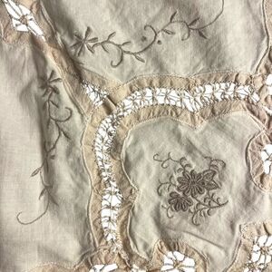 Beautiful vintage ivory linen tablecloth with matching napkins (6)