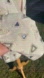 Good preowned condition with some visible areas that need spot cleaning. It has some small spots on the body, including the shoulders and sleeves, and the interior of the collar needs cleaning. These are dirty spots and should come clean with a professional spot cleaning. It may be missing a few beads, and some of the beading is loose. Overall, the beading is in really good condition though. Some of the mirrored pieces show bubbling and wear. Nothing is major.