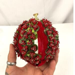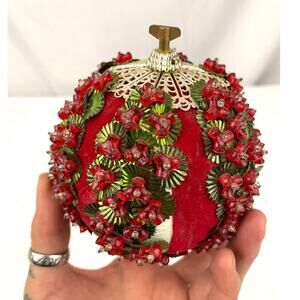 VTG Beaded Ornament Ball Music Box Christmas Decor | MCM Push Pin Craft Sequin