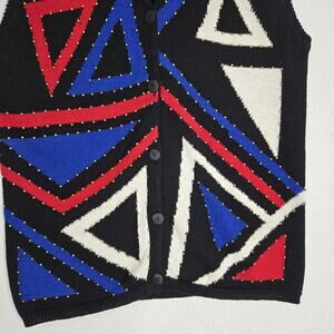 Vtg Beaded Sweater Vest Sz Black Red Blue White Geometric Button Front Retro