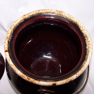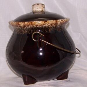 VTG Bean Pot Drip Glaze w/Lid and Metal Handle