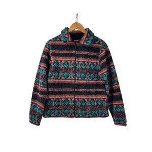 VTG Bear Bridge Outfitters Women's S Wool Blend Full Zip Jacket Aztec Pattern