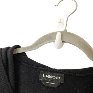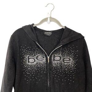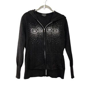 VTG Bebe Y2K Rhinestone L Full Zip Hoody Sweater Soft Stretch Logo Black Viscose