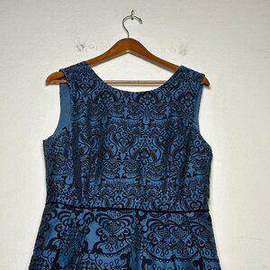 VTG Beige By Eci Blue Dress Women 10 Paisely Pattern Black Blue Sleeveless Midi