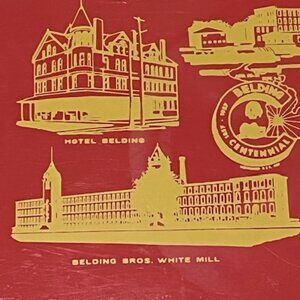 Features images of historic Belding, Michigan including: The Hotel Belding, Belding Hall Co. Refrigerators Mill "A", Belding Bros. White Mill, and the The Ashfield.
