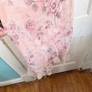 VTG Believe Ballet Pink Floral Fairy Garden Ruffle Midi Dress Romantic Size 10. Very good, preowned condition. Sleeveless. Textured, chiffon, floral printed overlay. Pink slip underneath overlay. Chiffon layer is slightly longer than slip. 100% polyester. Machine wash. Lay flat to dry. 1990s Y2K style. Please see measurements below as vintage sizing can differ from modern sizing.