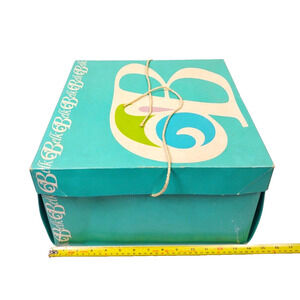 Vintage Square Belk Department Store Gift Shopping Hat Box Rare with Lid and Cord Handle from the 60's is in used, but in great condition. No holes, stains or tears in cardboard and White Rope Tie is complete. It has some minor surface wear marks on the top and bottom typical for its age shown in pics.