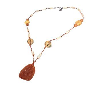 VTG Belle Costes Carved Carnelian Pendant Necklace 20" Bohemian Boho Chic