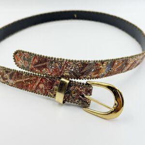 VTG Belt 1" Wide Gold Glitter Shiny Overlay Multi Color