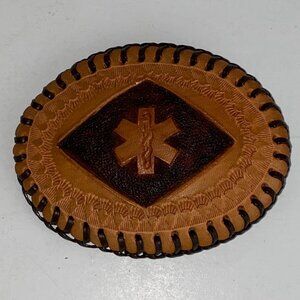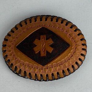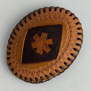 VTG Belt Buckle Master Leather Artist John Glassford Oval Tooled Medicine Symbol