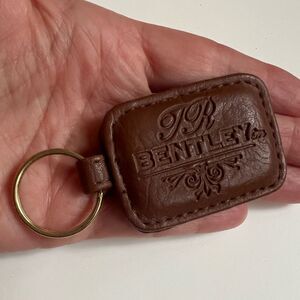 VTG Bentley Leather Keychain Puffy Brown Stitched Keyring Fob
