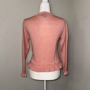 VTG Berries Sweater Women's Large Pink Floral Embroidered Acrylic Peplum Hem