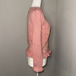 Berries Sweater Women's Large Pink Floral Embroidered Acrylic Winter Peplum Hem.