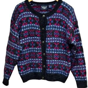 VTG Best American Clothing Co Mohair Blend Cardigan Fair Isle Sweater Large