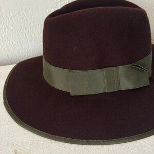 VTG Betmar Chelton Fedora Hat Olive Ribbon Trim Dark Purple Wool Felt One Size