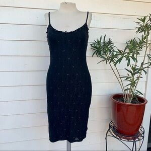 VTG Betsey Johnson 90 2000 y2K bead glitter patterned sexy Slip Dress Flapper