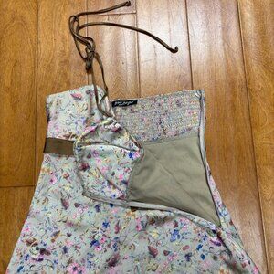 VTG Betsey Johnson Womens Silk Foral Dress Size 6 Halter Shirred Fairy Y2K 90s