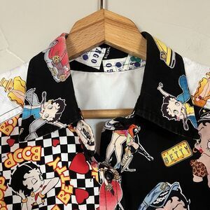 VTG Betty Boop Novelty Bingo Vegas NYC Cotton Button down Long Sleeve Blouse M/L