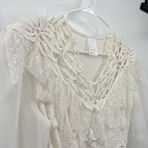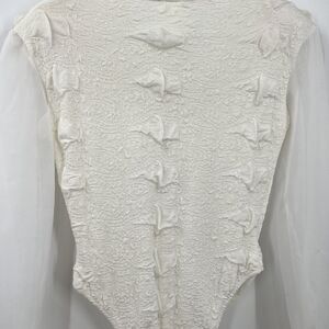 VTG Bhatti France Lace Ruffle Bodysuit Shoulder Pads Victorian S/M Classy