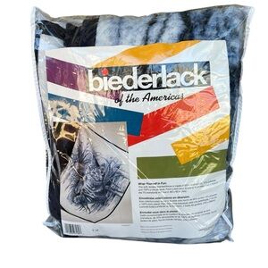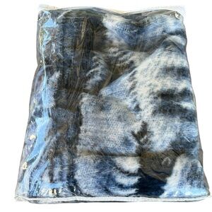 Vintage Biederlack Cat Kitten Plush Throw Blanket. New in an open package without tags. Navy Blue and Creamy White reversible with a fluffy cat/kitten peeking over a fence with foliage in the background. Navy Blue binding. Fluffy pile; very soft and cozy! It’s rare to find one of these blankets in new condition!