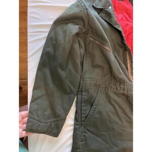 This vintage Big Ben coveralls in size Large Long are perfect for a mechanic or military worker in need of insulated work wear. Made in the USA with a durable cotton blend material, these green coveralls feature a quilt lining for added warmth. With a classic design and quality construction, these coveralls are the ideal choice for those working in cold or harsh environments. Showcasing the brand's heritage and craftsmanship, these coveralls are a reliable and stylish addition to any work wardrobe.