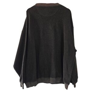 This men's size 2XL brown fleece sweater is embroidered with Big Dog Dad controlling the TV remote. 80% polyester 20% cotton.