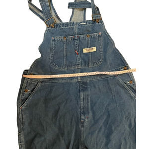 The Jc Penney Bib Overalls, a Classic and Durable Workwear Essential That Combines Rugged Style with Unbeatable Functionality. The Adjustable Shoulder Straps Allow for a Customizable Fit. Don't know exact size, could be a 3XL or 1XL. no tag inside, but measurements are shown in photos. check before ordering.