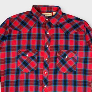 VTG Big Mac Men's Large Tall Plaid Flannel Shirt Pearl Snap Button Long Sleeve